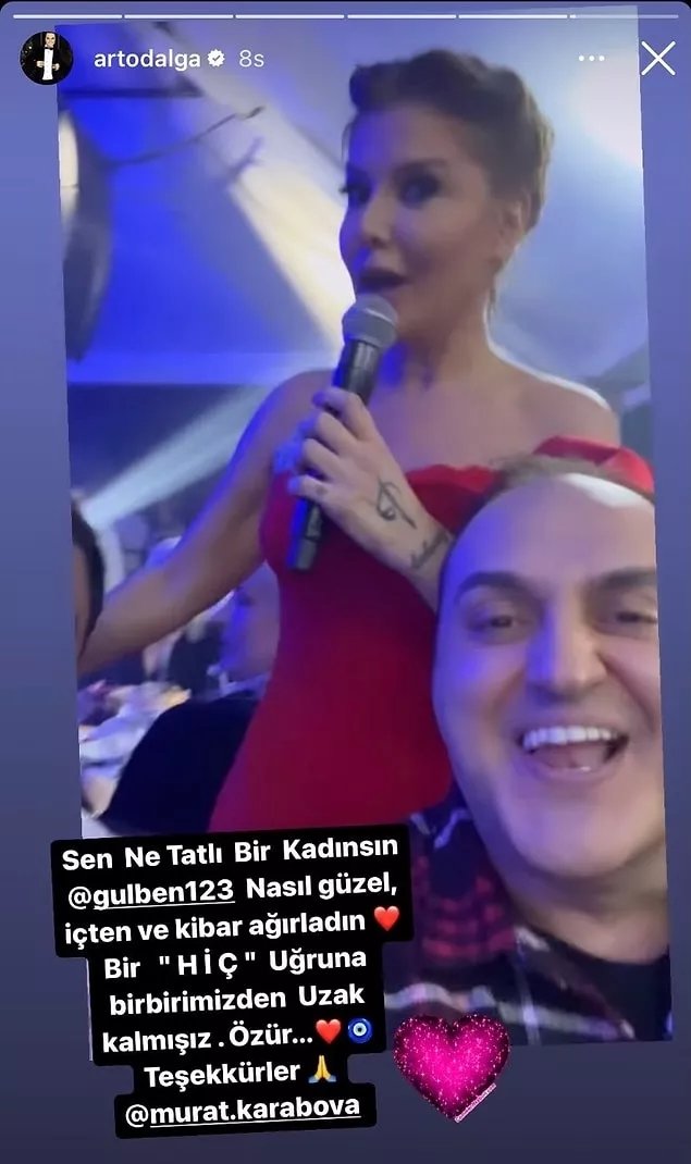 Bu yaşananların ardından Arto'dan gelen son hamle ortalığı fena karıştırmıştı. Günlerdir küs olan ikiliden Arto yaptığı hareketle şoke etti. Arto soluğu Seren Serengil'in düşmanı Gülben Ergen'in sahnesinde almıştı. İzleyenler arasında olan Arto, sahneye çıktığında Gülben Ergen'den magazin yorumculuğu yaptığı programda kendisiyle ilgili söylediği şeylerden dolayı özür dilemişti.