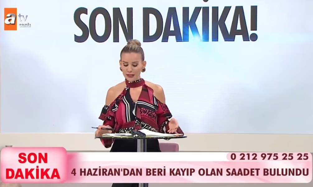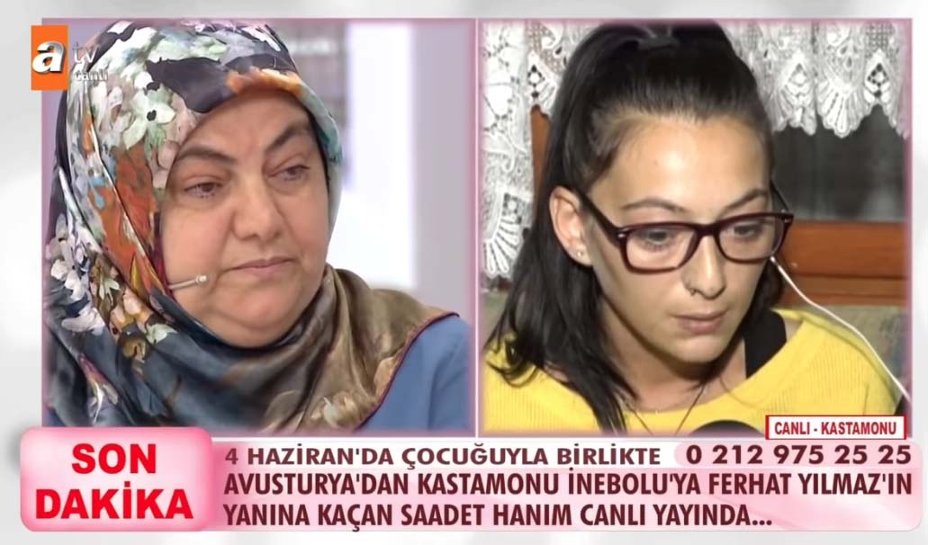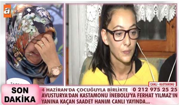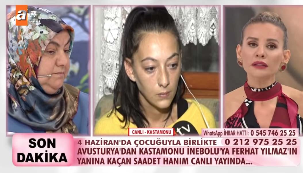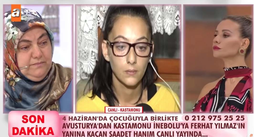 ATV'de yayınlanan Esra Erol'un programında TikTok uygulamasında tanıştığı bir erkekle kaçan Saadet ismindeki bir kadın, bir yıl sonra annesiyle canlı yayında yüzleşti.