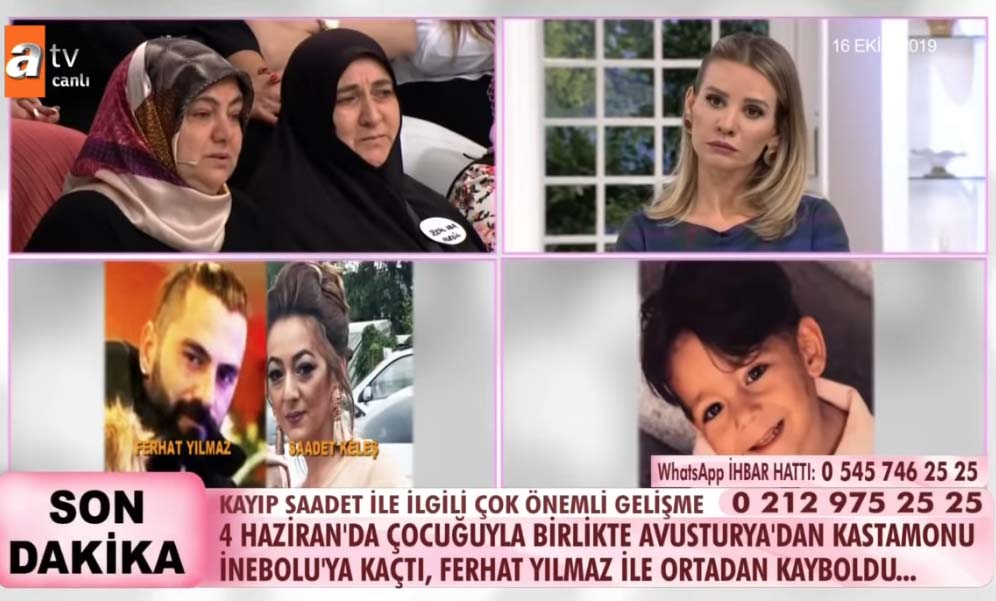 Esra Erol'da Saadet ismindeki bir kadın her şeyi itiraf etti! ATV ekranlarında yayınlanan fenomen program Esra Erol'da eşini ve çocuğunu bırakarak kaçan Saadet isimli kadının sevgilisi TikTok dolandırıcısı çıktı. Esra Erol'un programında TikTok uygulamasında tanıştığı bir erkekle kaçan Saadet ismindeki bir kadın, bir yıl sonra annesiyle canlı yayında yüzleşti. Saadet'in programa katılan gözü yaşlı annesi Serpil Celep, bu uygulamaya isyan ederek kızına ve torununa dön çağrısında bulundu.