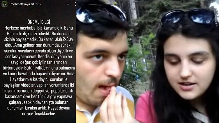Bir dönem sosyal medyanın en çok konuşulan çiftiydi onlar. Banu Berberoğlu ile Mehmet Kaya. Çift; makyaj, abur cubur ve piknik videolarıyla ünlenmişti. Fenomen ikiliden sevenlerini üzecek bir haber geldi. Mehmet Kaya, Instagram paylaşımında, "Bu kararı alalı 2-3 ay oldu…" diyerek şunları söyledi...