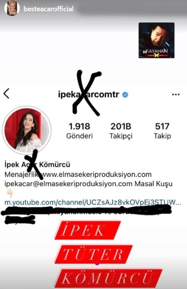 Geçtiğimiz günlerde Kayahan'ın kızı Beste Açar, İpek Açar'ın evlenmesine rağmen babasının soyadını kullanmasına tepki gösterip paylaşımlar yapmıştı.