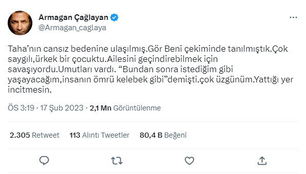 Taha Duymaz'a acı veda! "Yaşarken uğradığın zorbalıklar için özür dileriz"