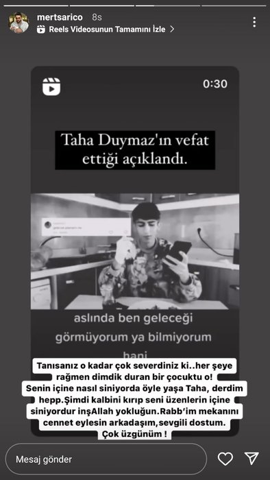 Sosyal medyada yokluk içinde çektiği yemek videolarıyla gönülleri fetheden ve 1,3 milyon kişinin takip ettiği Taha Duymaz 19 yaşında hayata veda etti.