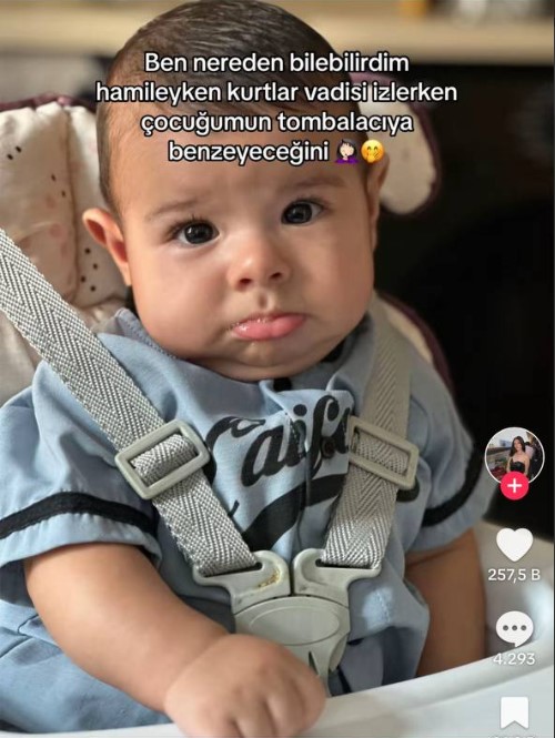 Bir sosyal medya platformunda bebeğinin fotoğrafını "Ben nereden bilebilirdim hamileyken Kurtlar Vadisi izlerken çocuğumun Tombalacı'ya benzeyeceğini" notuyla paylaşan kadın, dikkat çekti.