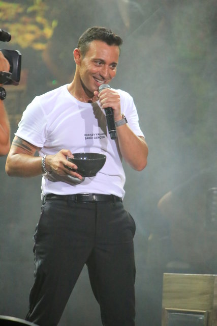 Dinleyenler arasında yer alan eski sevgilisi Tuba Ünsal'a sahneden seslenip, "Giriş, gelişme ve sonuç olarak muhteşem bir ilişkimiz vardı. Hatta o dönem yazmış olduğum, 'Tek Geçerim' şarkısı giriş, 'Pazara Kadar' şarkısı gelişme 'Kopmam Lazım' parçası ise ikimiz için de muhteşem bir gol oldu" diyerek herkesi güldürdü.