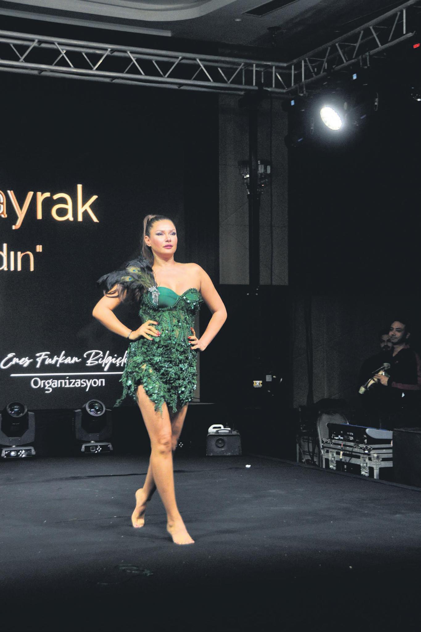 Yerde ayakkabılarını ayağından çıkararak kenara atan Altıntop, podyumda yalınayak yürümeye devam ederek bütün alkışları topladı.