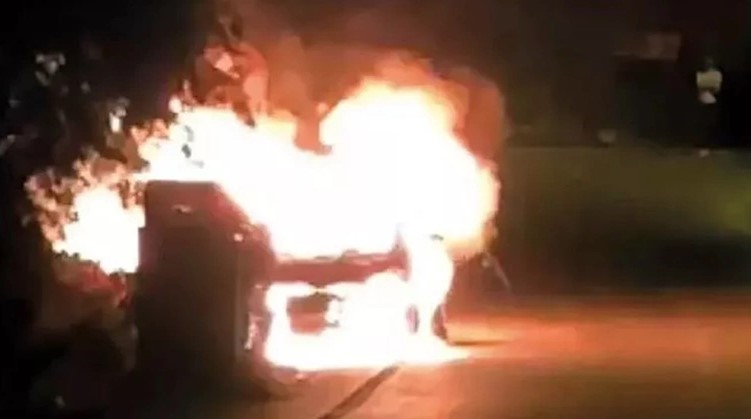 İçinde bulundukları komşularının aracı bir anda alev aldı, üçlü araçtan indikten kısa bir süre sonra ise araç patladı.