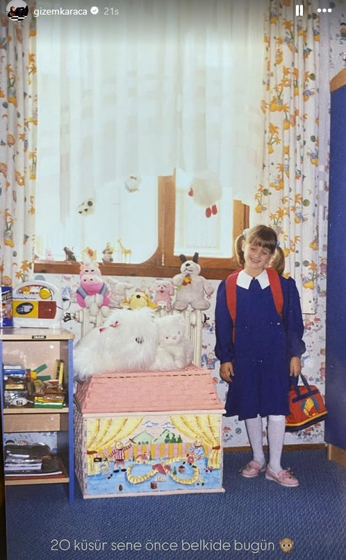 İş insanı Kemal Ekmekçi ile mutlu bir evlilik sürdüren ve şimdilerde annelik heyecanı yaşayan oyuncu Gizem Karaca da takipçilerini geçmişe götürdü. Karaca, yaklaşık 20 yıl öncesine ait çocukluk fotoğrafını sosyal medya hesabından paylaştı.
