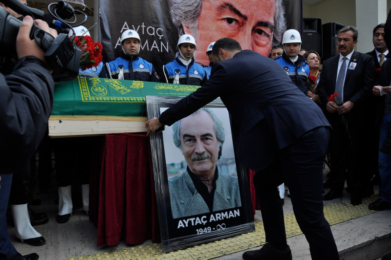 Adanalı oyuncu Aytaç Arman'ın cenazesi, Büyükşehir Belediyesi önündeki törenin ardından Kabasakal Mezarlığı'na getirildi.