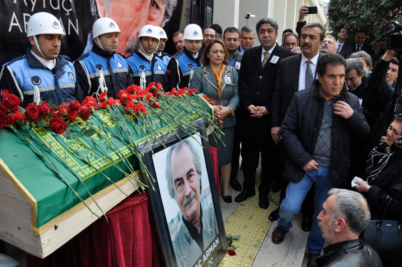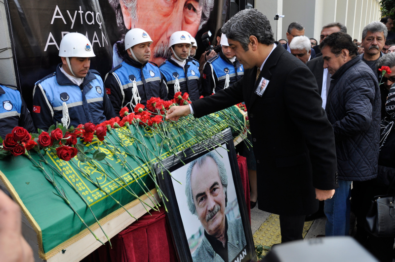 Aytaç Arman'ın tabutu Adana Büyükşehir Belediyesi önüne getirilirken, sanatçının tabutuna dostları karanfil bıraktı. Törene katılanlar gözyaşlarına hakim olamadı.