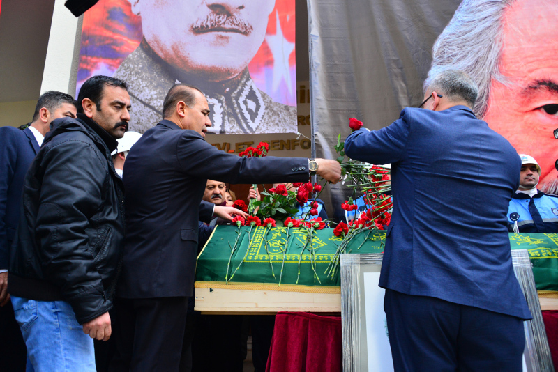Öğle namazının ardından kılınan cenaze namazı sonrası Bakan Ziya Selçuk, Arman'ın sanatçı dostları ve oğlu Erdem İnce oyuncunun tabutuna omuz verdi.