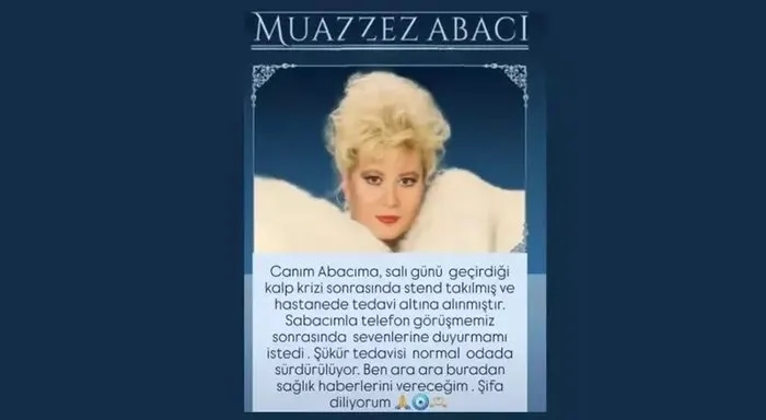 Kalp rahatsızlığı sebebiyle geçtiğimiz günlerde hastaneye kaldırılan Muazzez Abacı'dan acı haber geldi. Usta sanatçı 78'inci doğum gününde hayatını kaybetti. Öte yandan Başkan Erdoğan ve sanat camiasından peş peşe paylaşımlar gelirken usta sanatçının cenaze programı da belli oldu. Türk sanat müziğinin efsane ismi Abacı'nın ABD'de naaşının Türkiye'ye getirilmesi için Kültür ve Turizm Bakanlığı devreye girdi.