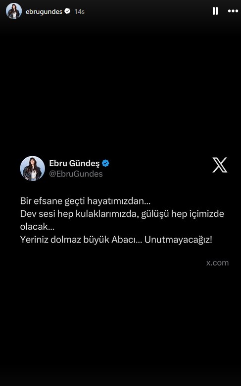 Budak paylaşımında şu ifadeleri kullandı: "Büyük bir üzüntüyle sanatçımız Muazzez Abacı'yı 12 Kasım 2025 tarihinde, 78. doğum gününde kaybettik.