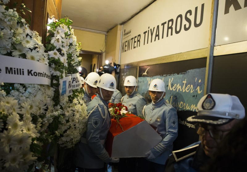 Bugün son yolculuğuna uğurlanacak olan Kenter'in cenazesi düzenlenecek ilk tören için Kenter tiyatrosuna getirildi.