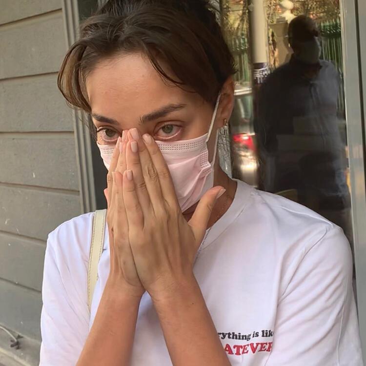 Nişantaşı'nda görüntülenen eşi Cansel Elçin ile görüntülenen Zeynep Tuğçe Bayat, gözyaşları içinde, "Elimiz kolumuz bağlı bir şekilde 'ne yapabiliriz' diye çıldırıyoruz" dedi.