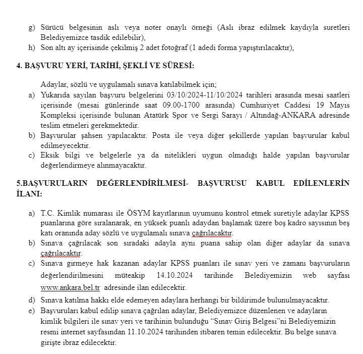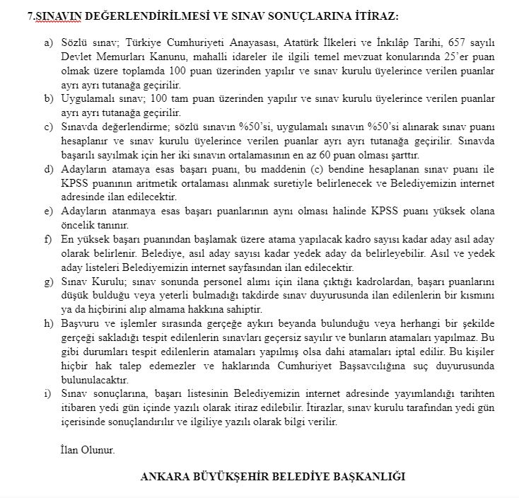 Ankara Büyükşehir Belediyesi de bu kapsamda yeni bir alım ilanı yayınlayarak, en az 65 KPSS puanı ve bazı şartlara bağlı olarak onlarca memur alımı yapılacağını duyurdu.