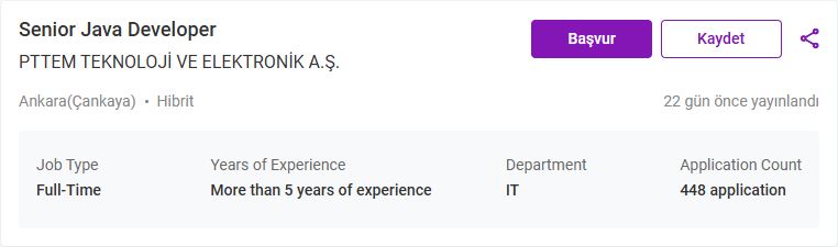 Başvuru süreçleri kısa süreli olup, her pozisyonun son başvuru tarihi ilanlarda belirtilmiştir. Kıdemli PHP Geliştiricisi ve Kıdemli Java Geliştiricisi pozisyonlarına başvurular kariyer platformu üzerinden yapılmaktadır. Müşteri Hizmetleri Görevlisi pozisyonuna ise başvurular İŞKUR (esube.iskur.gov.tr) adresi üzerinden alınmaktadır.