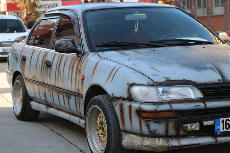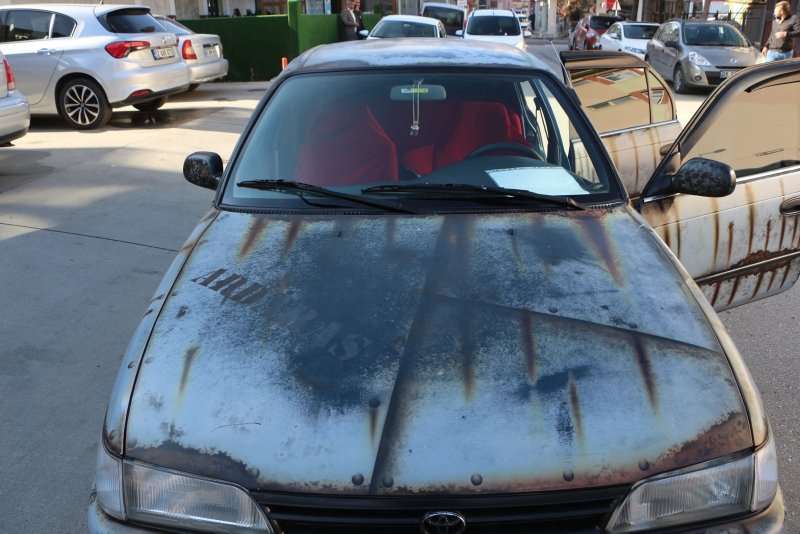 Modifiye araç tutkunu bir kişinin 1996 model Toyota otomobilini görenler hayrete düşürüyor. Boyasız ve paslanmış gibi görünen otomobilin piyasa değeri ise dudak uçuklattı. Vatandaşlar arabaya yoğun ilgi gösterdi.