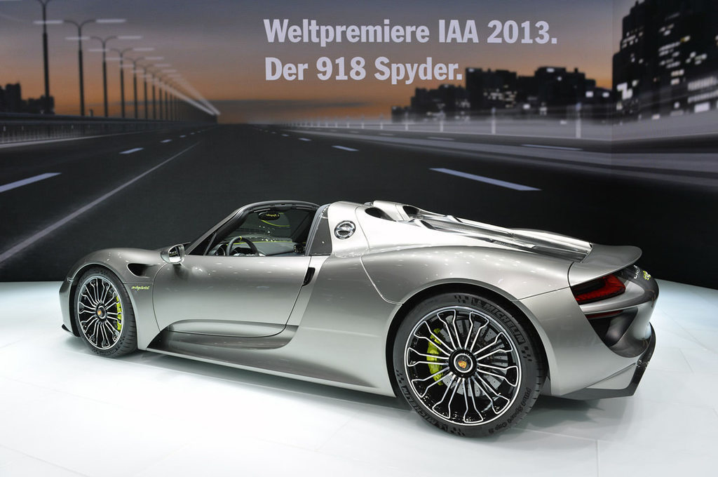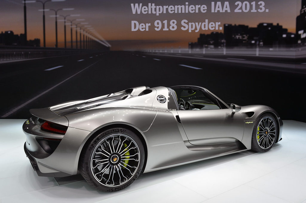 İki yıl önce konsept olarak tanıtılan hibrit teknolojili Porsche 918, vergiler hariç fiyatı 850 bin dolar. 4.6 lt hacimli 600 HP'lik V8 benzinli motorla donatılan 918, 287 HP'lik elektrikli motorlar sayesinde toplamda 887 HP'lik bir güç değerine ulaşabiliyor.