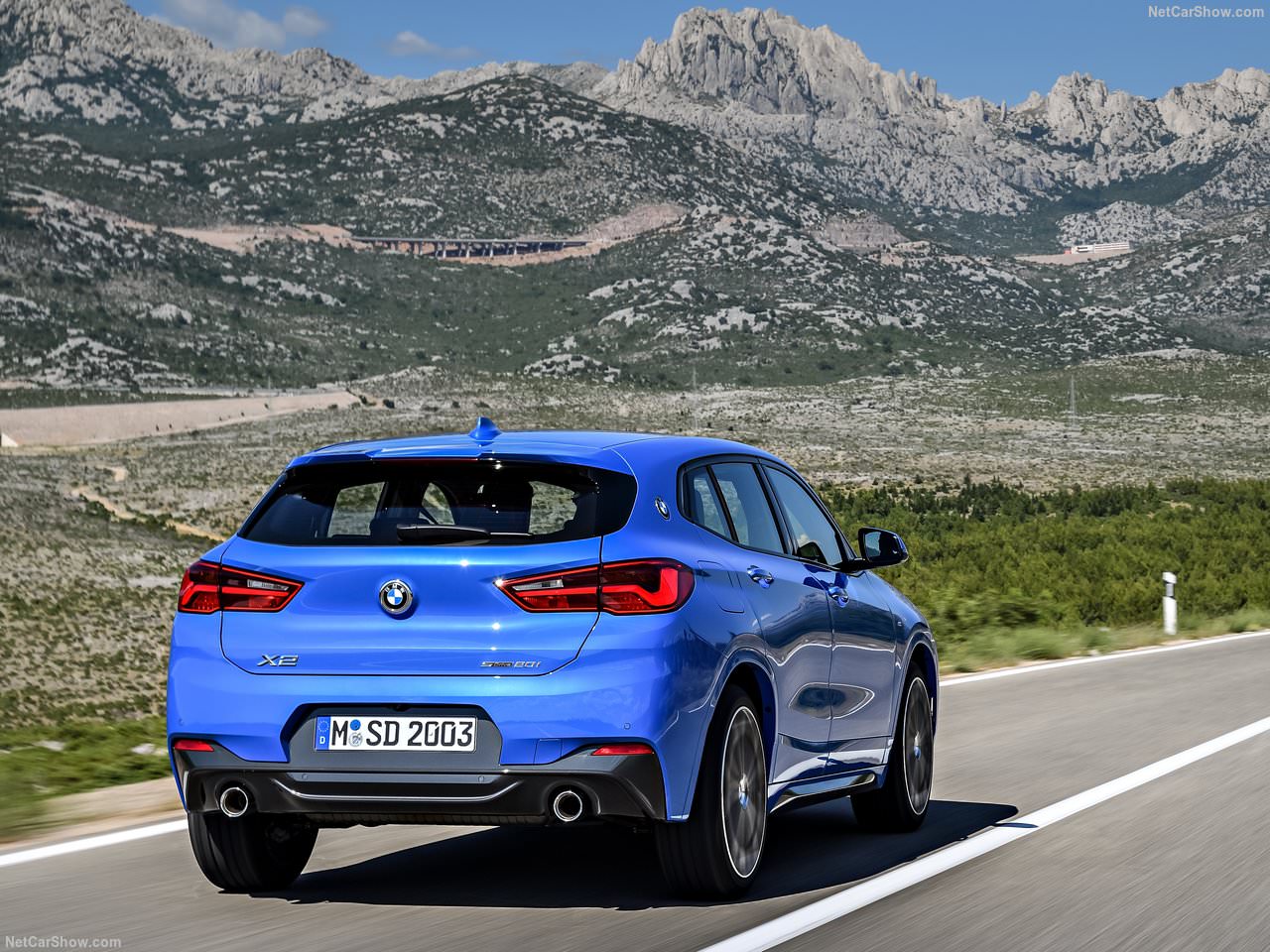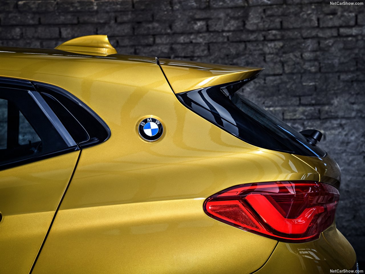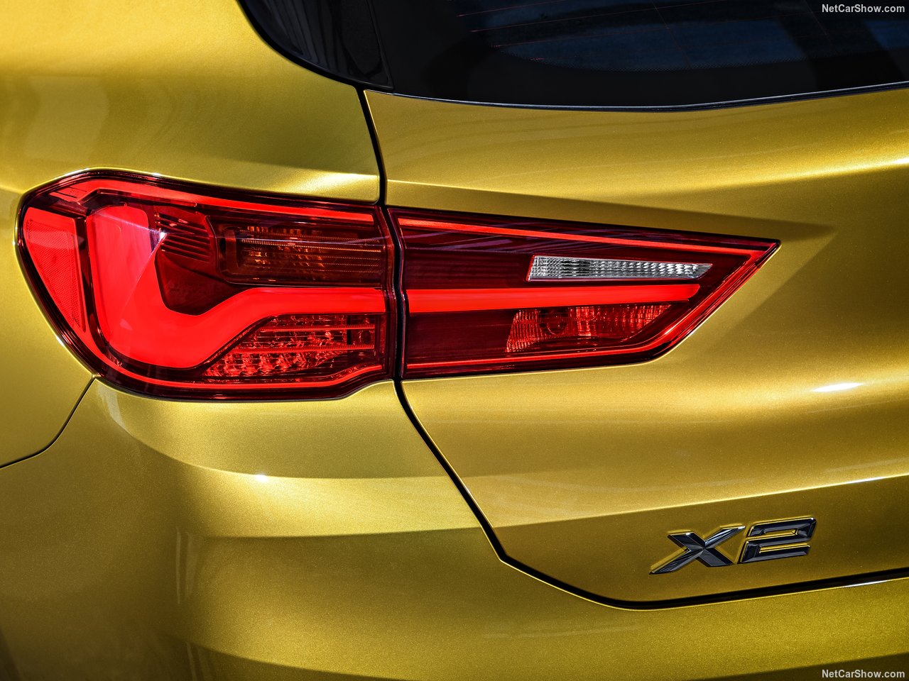 Oldukça geriye yaslanmış bir ön cam, arkaya doğru alçalan tavan ve devamındaki bagaj üstü spoyleri, çıkıntılı omuz çizgileri, LED stoplar ve C sütunlarındaki BMW logoları X2'nin farklılık yaratan tasarım detaylarından.