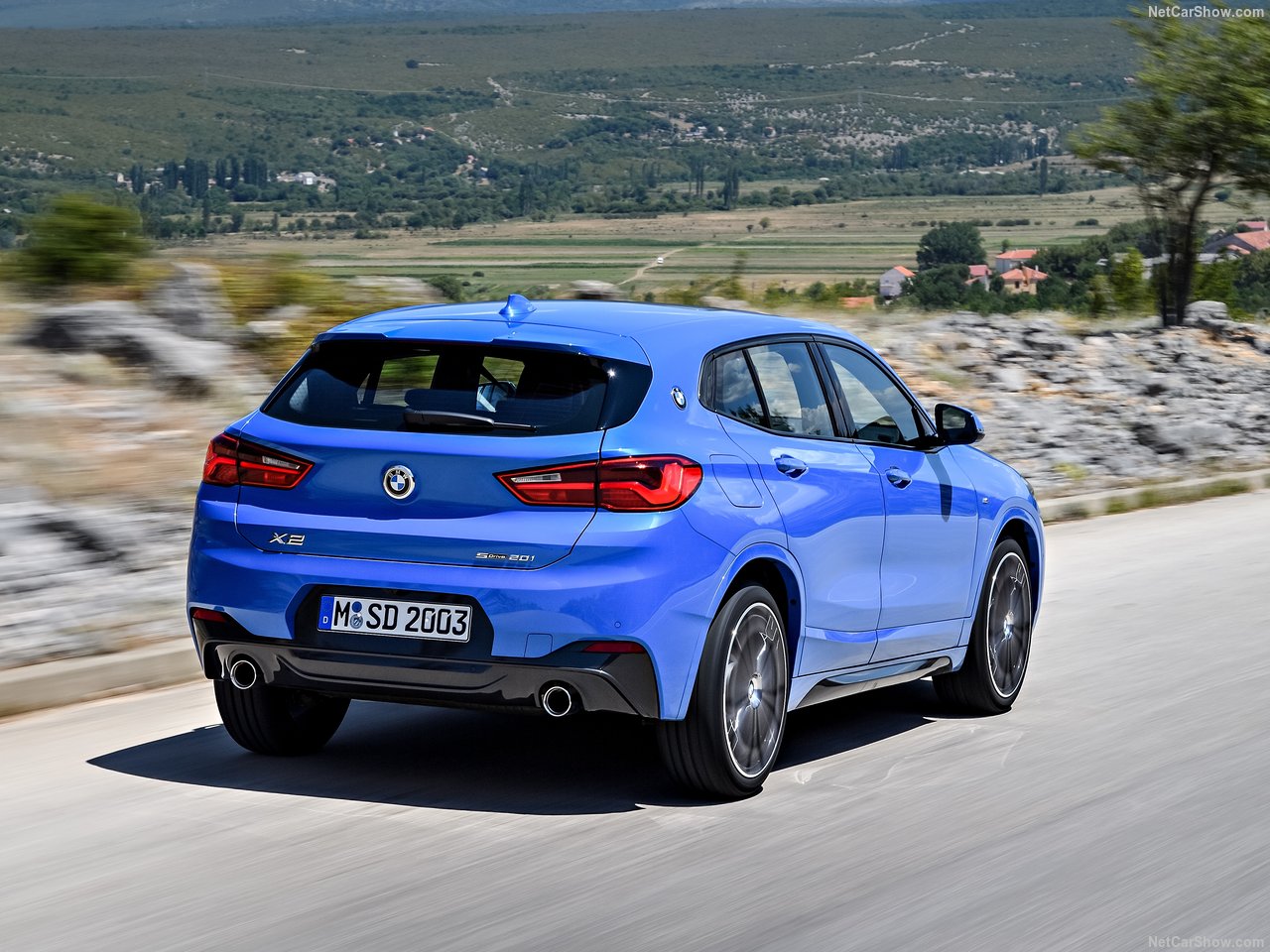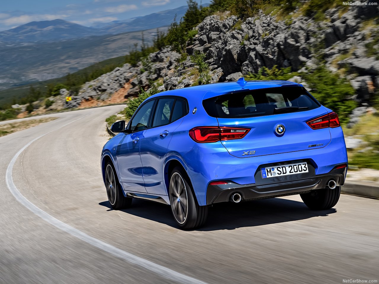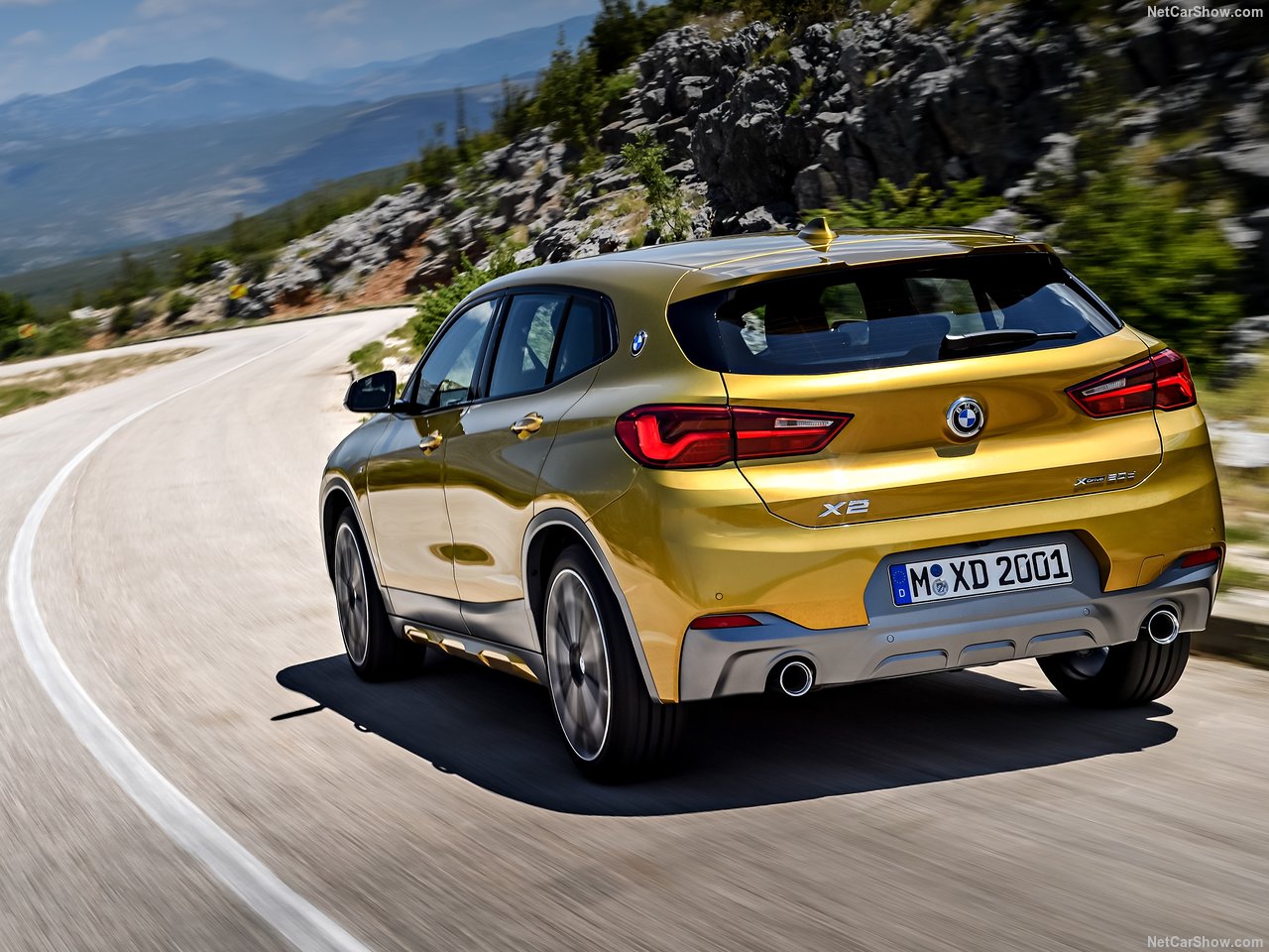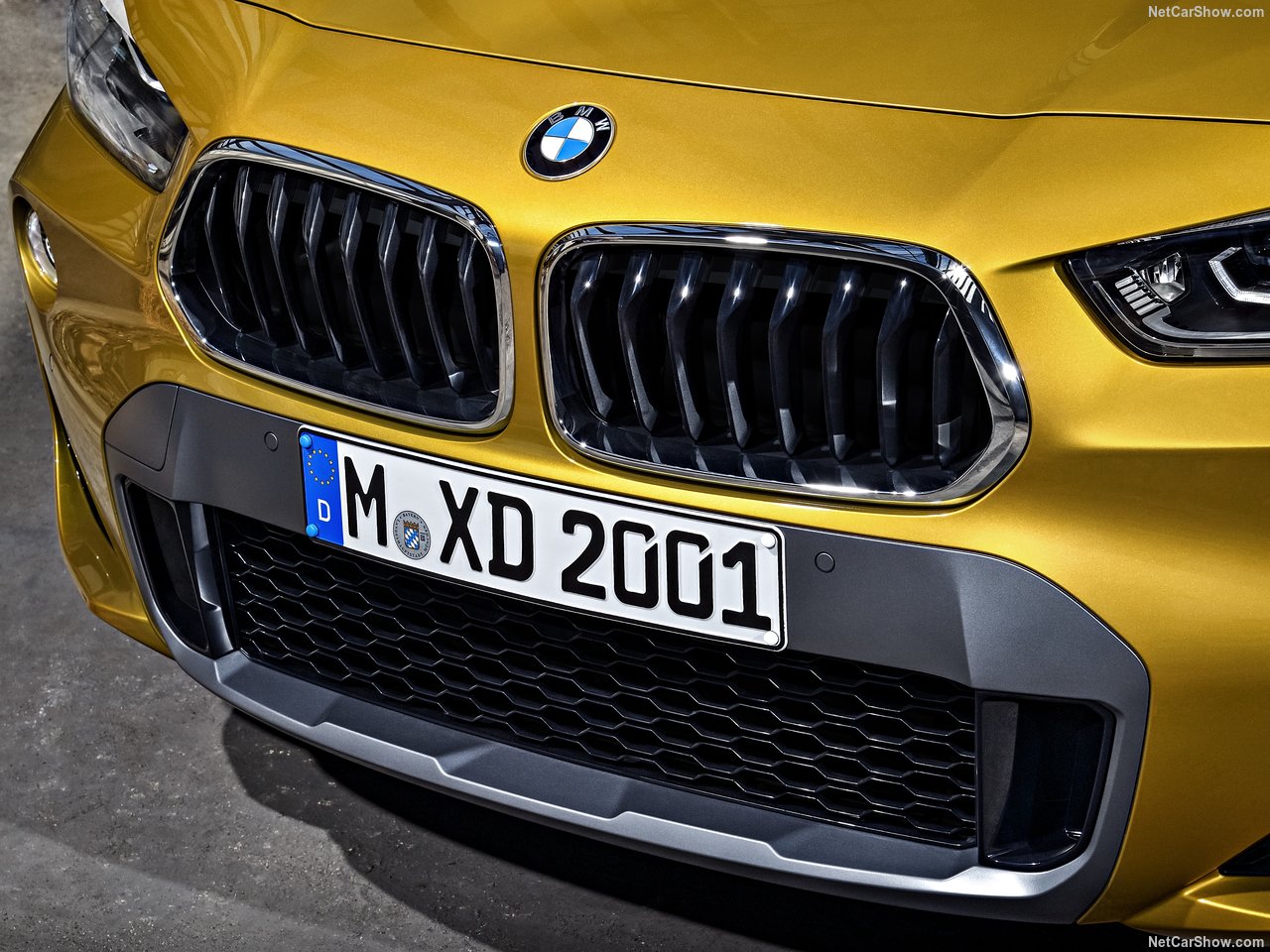 Oldukça geriye yaslanmış bir ön cam, arkaya doğru alçalan tavan ve devamındaki bagaj üstü spoyleri, çıkıntılı omuz çizgileri, LED stoplar ve C sütunlarındaki BMW logoları X2'nin farklılık yaratan tasarım detaylarından.