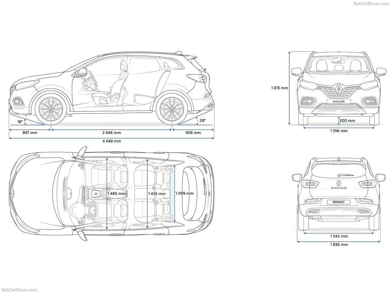 Renault Kadjar, krom ekler ve güncellenmiş tamponlar ile daha geniş bir ızgara içeren ön ve arka bölümler ile geldi.