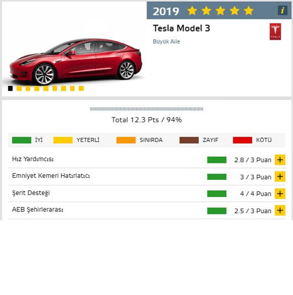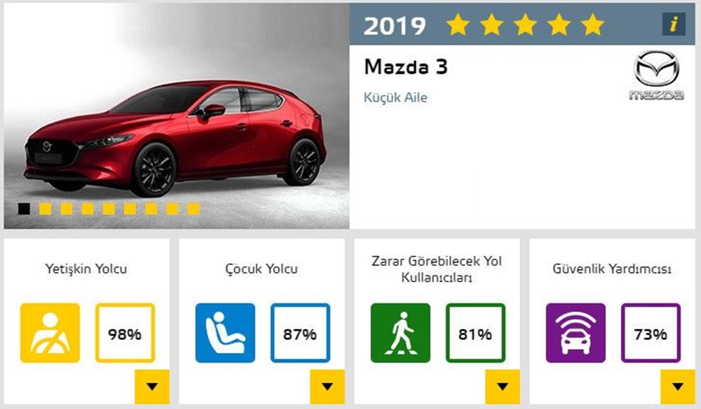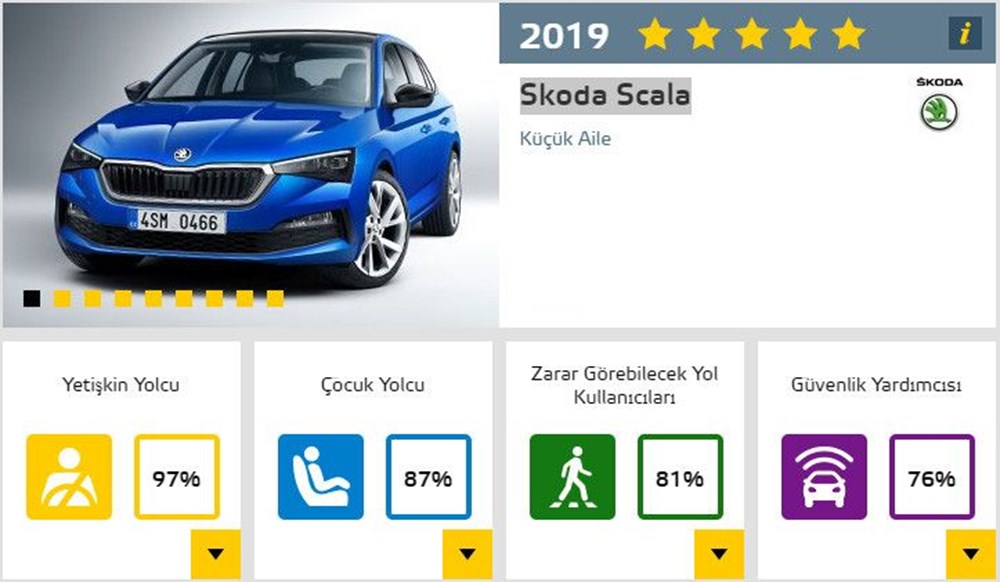 İşte toplam derecelendirme puanına göre 2019'da yapılan Euro NCAP testlerinden en başarılı çıkan 10 model...
