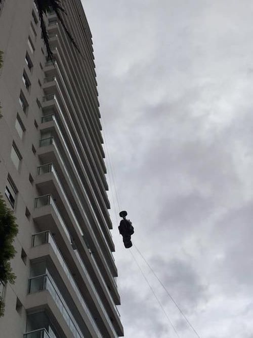 Araç daireye binanın dışından halatla böyle çıkarıldı...