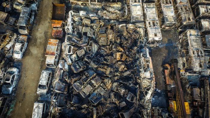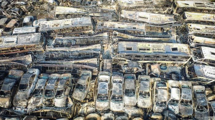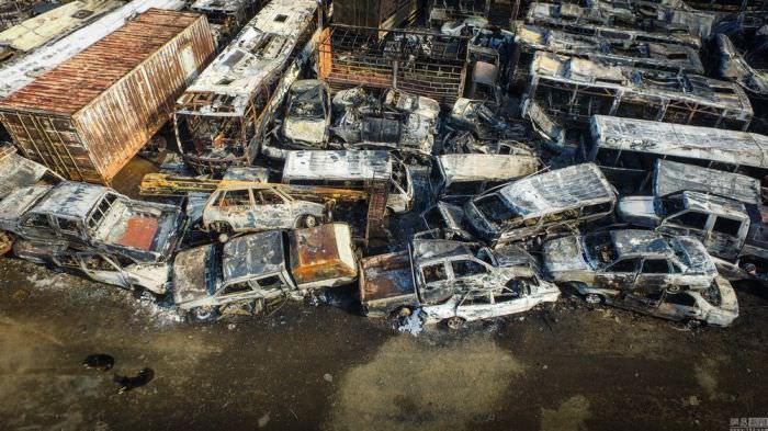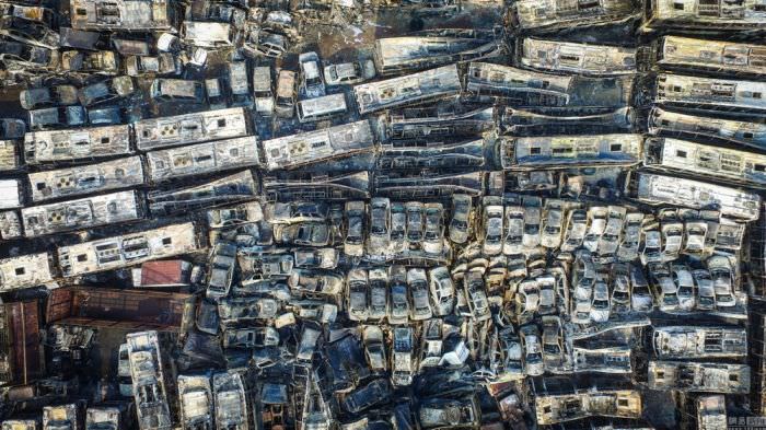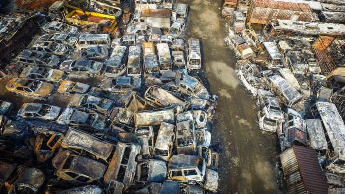 Çin'in Haikou kentinde araç parkında çıkan yangında 6 bin otomobil yandı. Yangın, 7 saat boyunca itfaiye tarafından kontrol altına alınamadı. Saatlerce devam eden yangın sonrası havadan çekilen görüntüler yangının büyüklüğünü gözler önüne serdi. Görüntülerde arabaların hurda haline geldiği hatta eridiği görülüyor. Yangında binlerce araç kullanılmaz hale gelirken, yaralanan kimse olmadı.