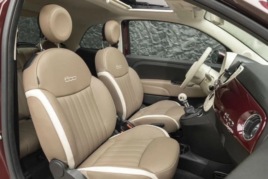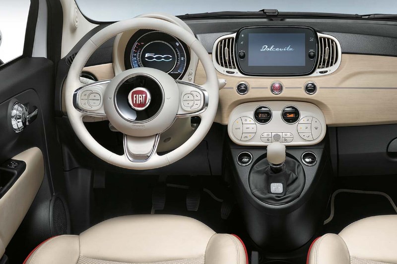 İtalyan Riveria'sının şezlonglarından ve plaj şemsiyelerinden esinlenen renkli çizgili tentesiyle ilk bakışta dikkatleri üzerine çeken Fiat 500 Dolcevita, şık ahşap ön paneli ve yelken dünyasını anımsatan fildişi deri koltuklarıyla eşsiz bir tasarıma sahip olduğunu kanıtlıyor.
