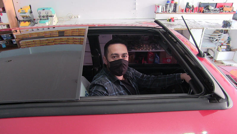 Hurdaya ayrılmak üzere bulduğu bir aracı satın alan Özkan, motor aksamında bakım yaptırdıktan sonra tavanının bir bölümünü aletle kesip, gelişmiş araçlarda bulunan açılır tavan taktı.