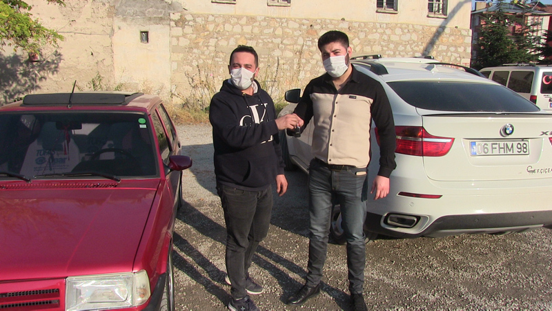 Aracı start stop ve katlanır ayna gibi özelliklerle donatan Mehmet Özkan, hurda fiyatına satın aldığı aracı 10 katı fiyata sattı.