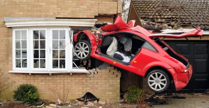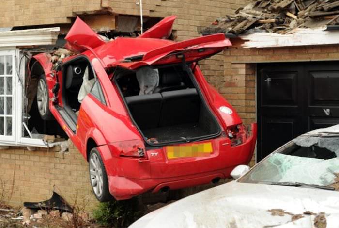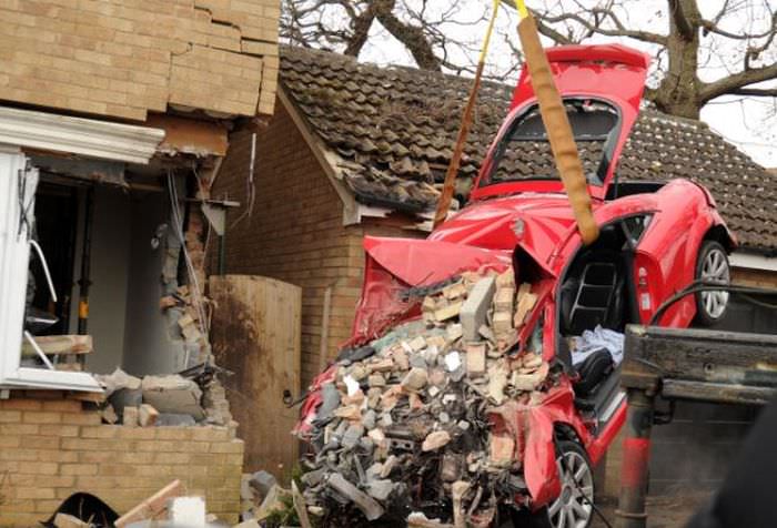 İngiltere'de 20 yaşında bir genç aşırı süratle kullandığı lüks aracıyla bir evin duvarına ok gibi girdi.