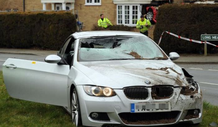 Resimlerde görüldüğü gibi otomobilin hava yastıkları açılmasına rağmen emniyet kemeri takmayan sürücü, kazada ciddi bir şekilde kafasından yaralandı ve Cambridge'de bulunan bir hastanenin yoğun bakımına alındı.