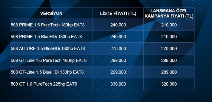 Peugeot'nun Yeni Peugeot 508 için düzenlediği basın toplantısında konuşan Anaç, Yeni Peugeot 508'in liste fiyatlarının 240 bin lira olduğunu ve lansmana özel kampanya ile fiyatlarının 210 bin lira olduğunu söyledi.