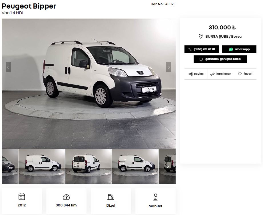 5) 2012 Model Peugeot Bipper 310.000 TL