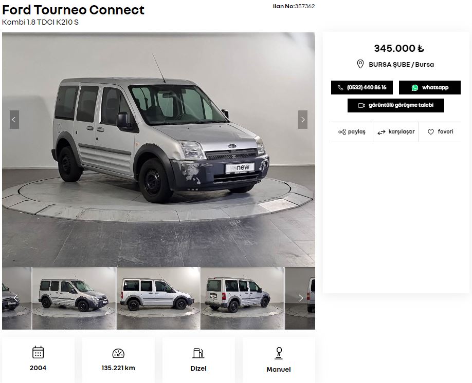 8) 2004 Model Ford Tourneo Connect 345.000 TL