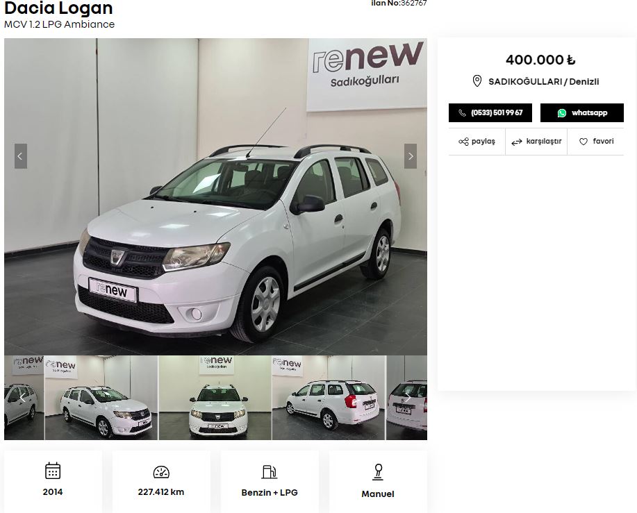 Renault Nisan ayı yenilenmiş ikinci el araç modellerini ve fiyatlarını açıkladı. 230 bin TL'den başlayan fiyatlarla ikinci el araç satışı gerçekleştiren firma herkesin bütçesine uygun garantili araç satışına devam ediyor. Test sürüşü, ekspertiz, mekanik ve karoser onarımı gibi bir dizi hizmetten sonra araçları detaylı iç ve dış temizlik yaparak satışa sunan firma Renault, Dacia, Fiat, Opel, Nissan, Ford, Peugeot, Volkswagen, Citroen, Hyundai, BMW, Kia, Toyota, Skoda, Audi, Seat, Honda, Land Rover, Jeep, Suzuki, Alfa Romeo, Chevrolet, Daihatsu, Jaguar, Porsche ve Volvo gibi markaların ikinci el araçlarını tamamen elden geçirerek yeniden piyasaya sürüyor.