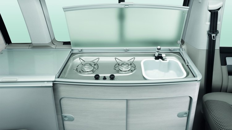 Bir karavanı andıran tasarıma sahip olan aracın arka koltukları yatarak yatak haline gelebiliyor. 7 kişilik oturma kapasitesi sunan Volkswagen California, aracın içinde 5 kişinin yatabilmesine imkan tanıyor.