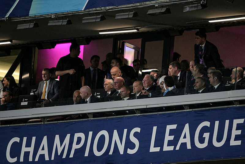 BaşkanErdoğan, burada, İngiltere'nin Manchester City takımıyla İtalya'nın Inter ekibi arasında oynanan final maçını izlemek üzere yerini aldı.