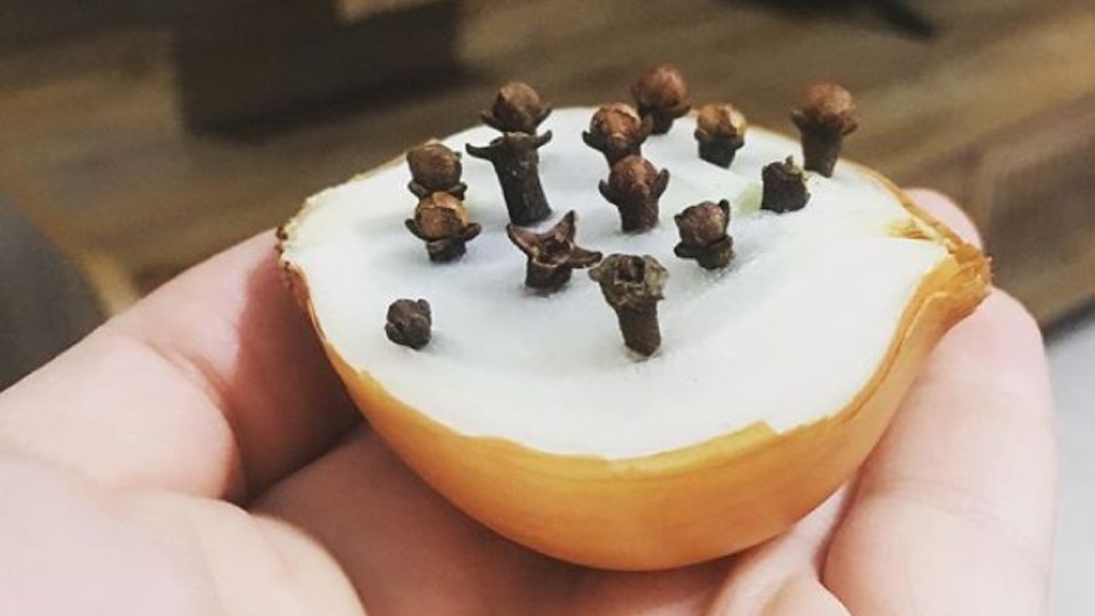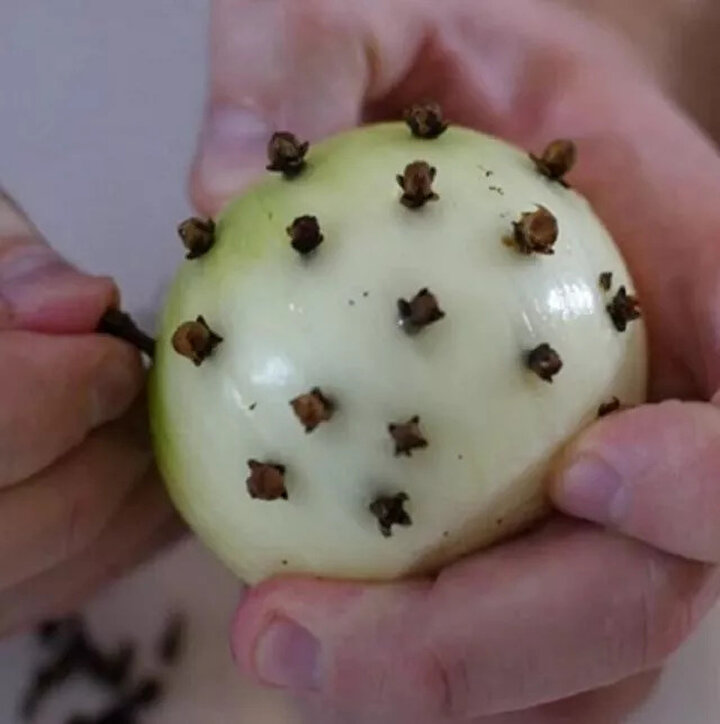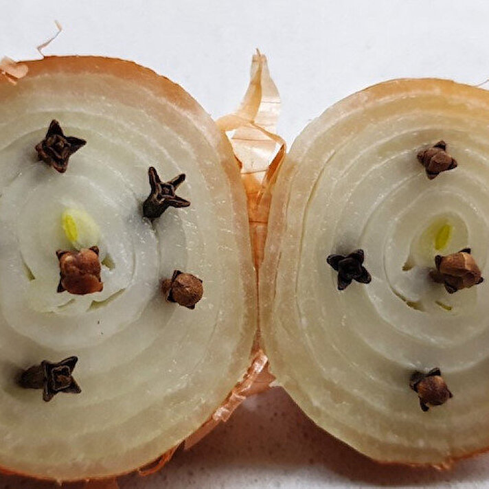 Soğan ve karanfilin kokusu solunum yollarını açarken aynı zamanda vücudu virüslerden koruyor. Soğan ve karanfil, tüm enfeksiyon hastalıklarına karşı koruma kalkanı görevi üstlenir. Bu doğal kalkanı hazırlamak için önce bir soğanı alıp ortadan ikiye bölün. Ayırdığınız soğanın düz tarafına tek tek karanfil batırın. En az 6 karanfili soğana sapladıktan sonra küçük bir kabın içine yerleştirin.