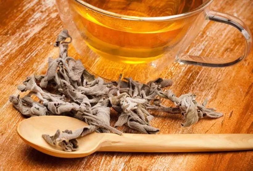 Yani bir tutam adaçayını aldınız, bir çentik de içine ebegümeci ilave edin, hatta iki tutam alın adaçayını, yarım tutam kadar da ebegümeci, karıştırın bir bardak suda, 6-7 dakika kaynatın.