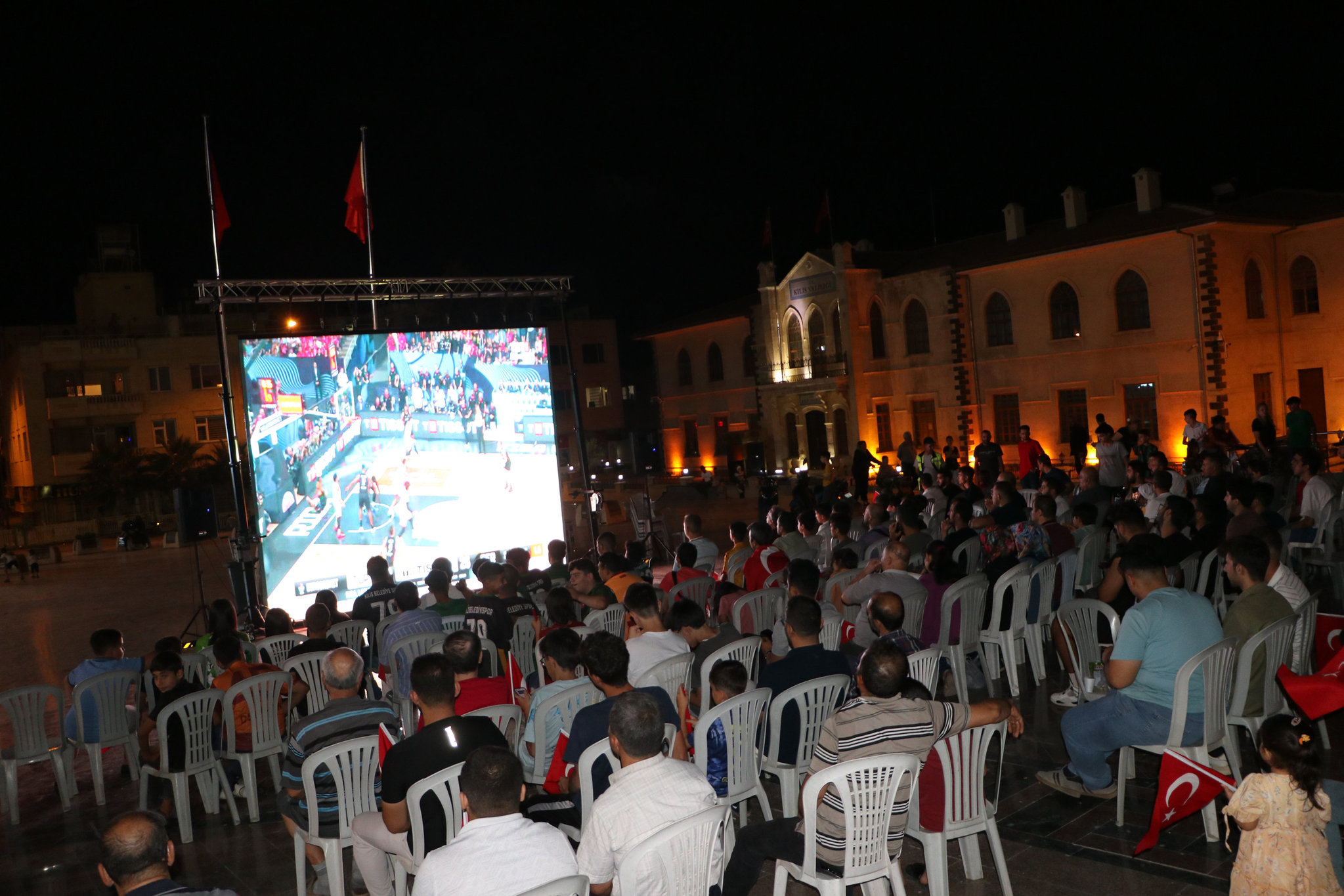 Kilis'te vatandaşlar, A Milli Basketbol Takımı'nın 2025 Avrupa Basketbol Şampiyonası (EuroBasket 2025) finalinde Almanya ile oynadığı karşılaşmayı dev ekranda izledi.