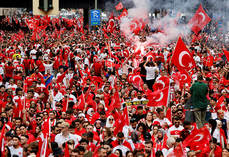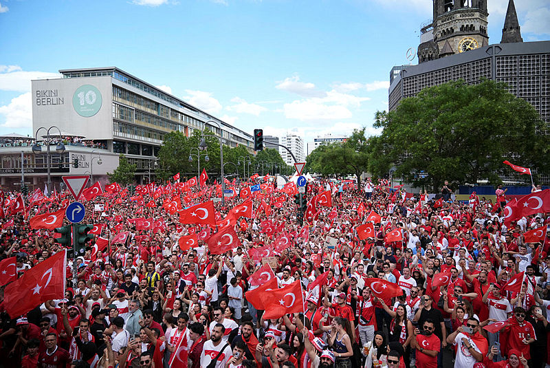 Türkiye, 2024 Avrupa Futbol Şampiyonası çeyrek final maçında turnuvanın güçlü ekibi Hollanda ile kozlarını paylaşacak. Milliler, Hollanda'yı yenerek adını yarı final turuna yazdırmak isterken, Berlin'de toplanan Türk taraftarlar, A Milli Takım'ı 'Bozkurt' selamıyla karşıladı. İşte kare kare o anlar...