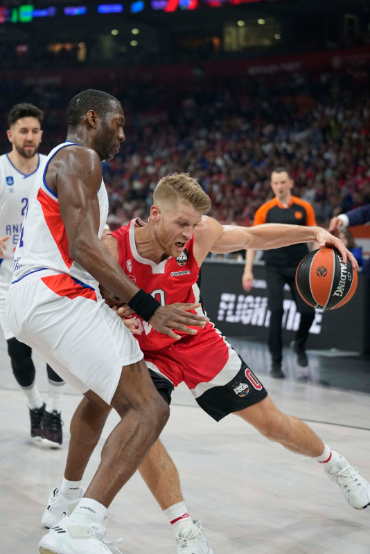 Stark Arena'da oynanan karşılaşmaya etkili başlayan Olympiakos, Walkup ve Fall'ın basketleriyle 6. dakikada 7 sayılık fark yakaladı: 12-5.