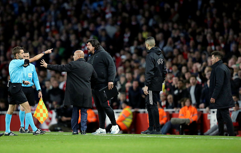 UEFA Avrupa Ligi yarı final ilk maçlarında İngiliz ekibi Arsenal ile İspanya'nın Atletico Madrid takımının karşı karşıya geldiği mücadelede Fransız hakem geceye damgasını vurdu.