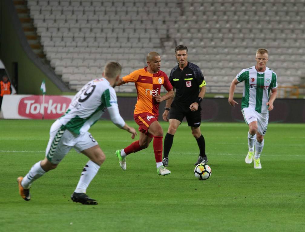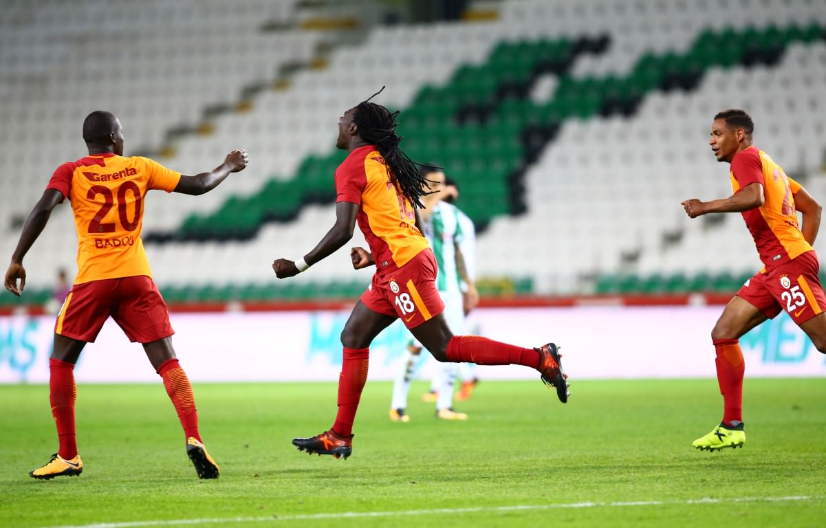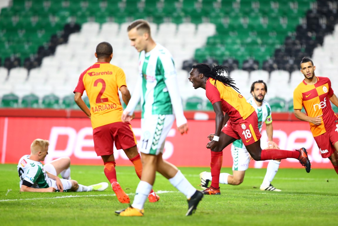 Lider Galatasaray, Süper Lig'in 8. haftasında konuk olduğu Atiker Konyaspor'u Gomis'in golleriyle 2-0 mağlup etti. Lider Galatasaray, Süper Lig'in 8. haftasında konuk olduğu Atiker Konyaspor'u Gomis'in golleriyle 2-0 mağlup etti. İşte maçtan kareler...