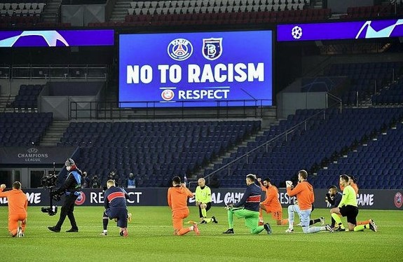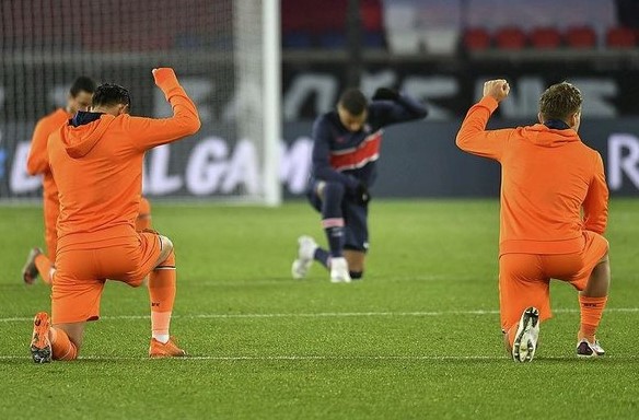 Maç öncesi 2 takım orta yuvarlakta diz çökerek, tek ellerini havaya kaldırdı ve ırkçı saldırıyı protesto etti.