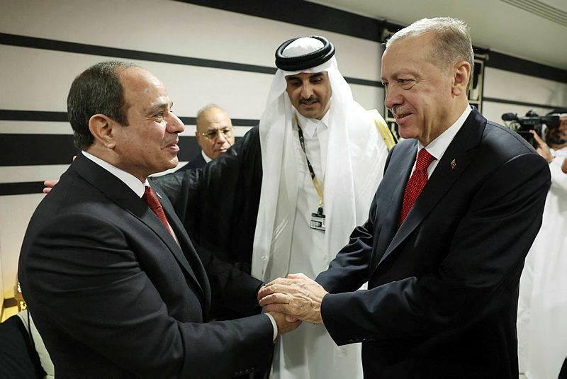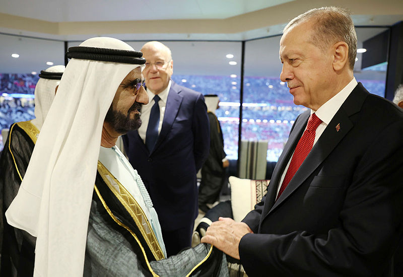 Başkan Erdoğan, Katar Emiri Şeyh Temim bin Hamed Al Sani'nin davetine icabetle geldiği Katar'ın başkenti Doha'da bulunan Al Bayt Stadı'ndaki resepsiyonda bazı liderlerle ayaküstü görüştü.