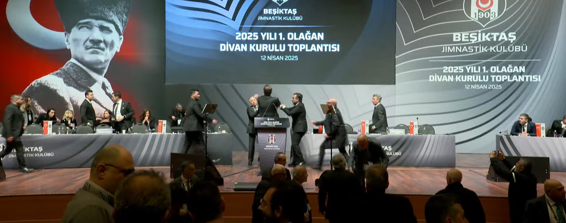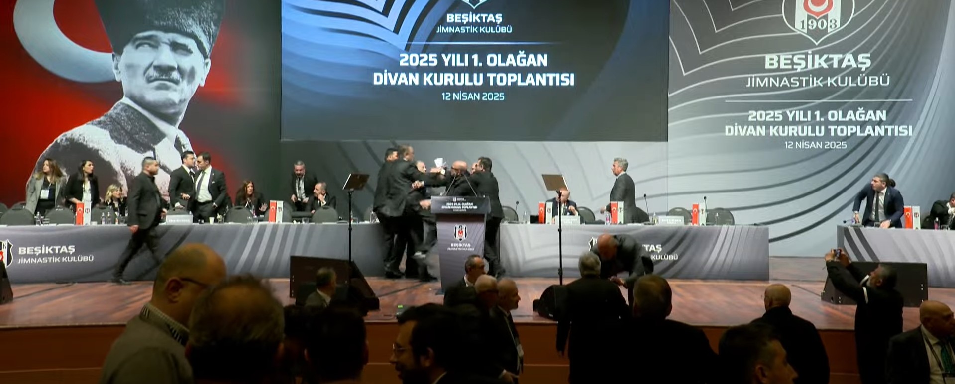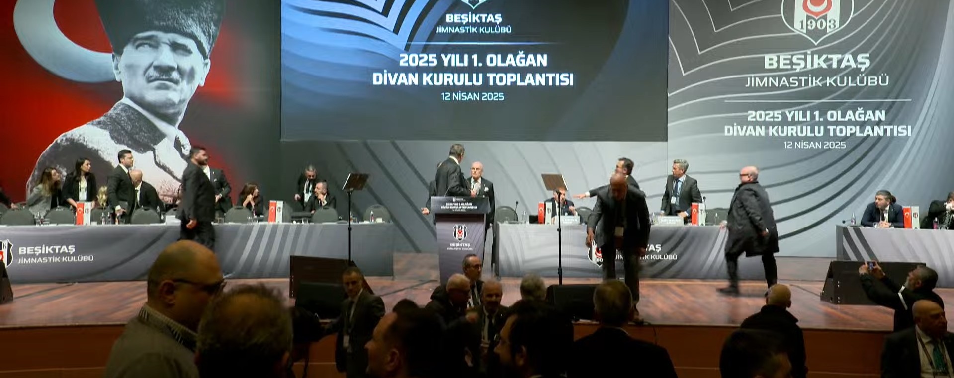 Beşiktaş Divan Kurulu'nda ortalık karıştı. Siyah-beyazlı kulübün eski başkanı Hasan Arat ile Divan Başkanı Tevfik Yamantürk arasında kürsüde kavga çıktı.